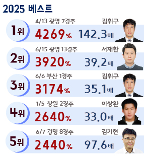 적중 경주수 순위